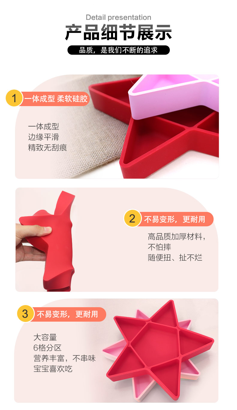 您的位置:首頁 > 產品中心 > 硅膠嬰童用品 > 硅膠碗 > 硅膠兒童五角形狀餐盤 嬰兒輔食碗 廠家直銷可定制