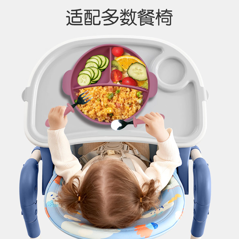 嬰兒吸盤式硅膠分格碗卡通學吃飯訓餐具