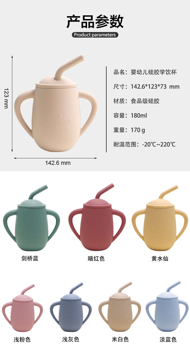 嬰幼兒硅膠學(xué)飲杯 帶吸管飲水杯