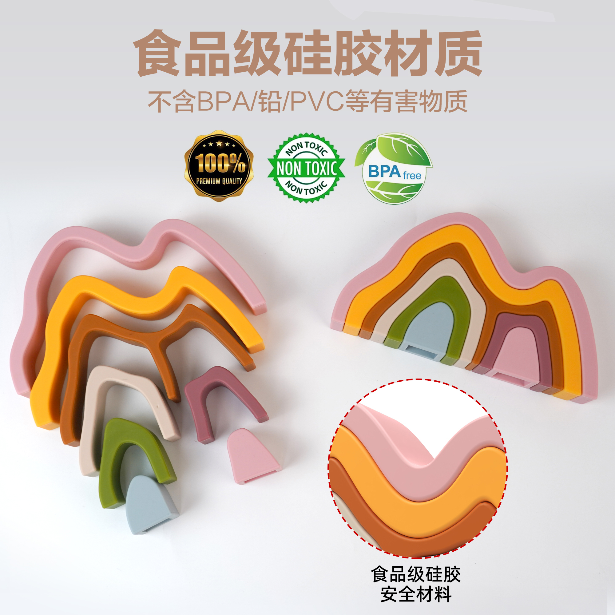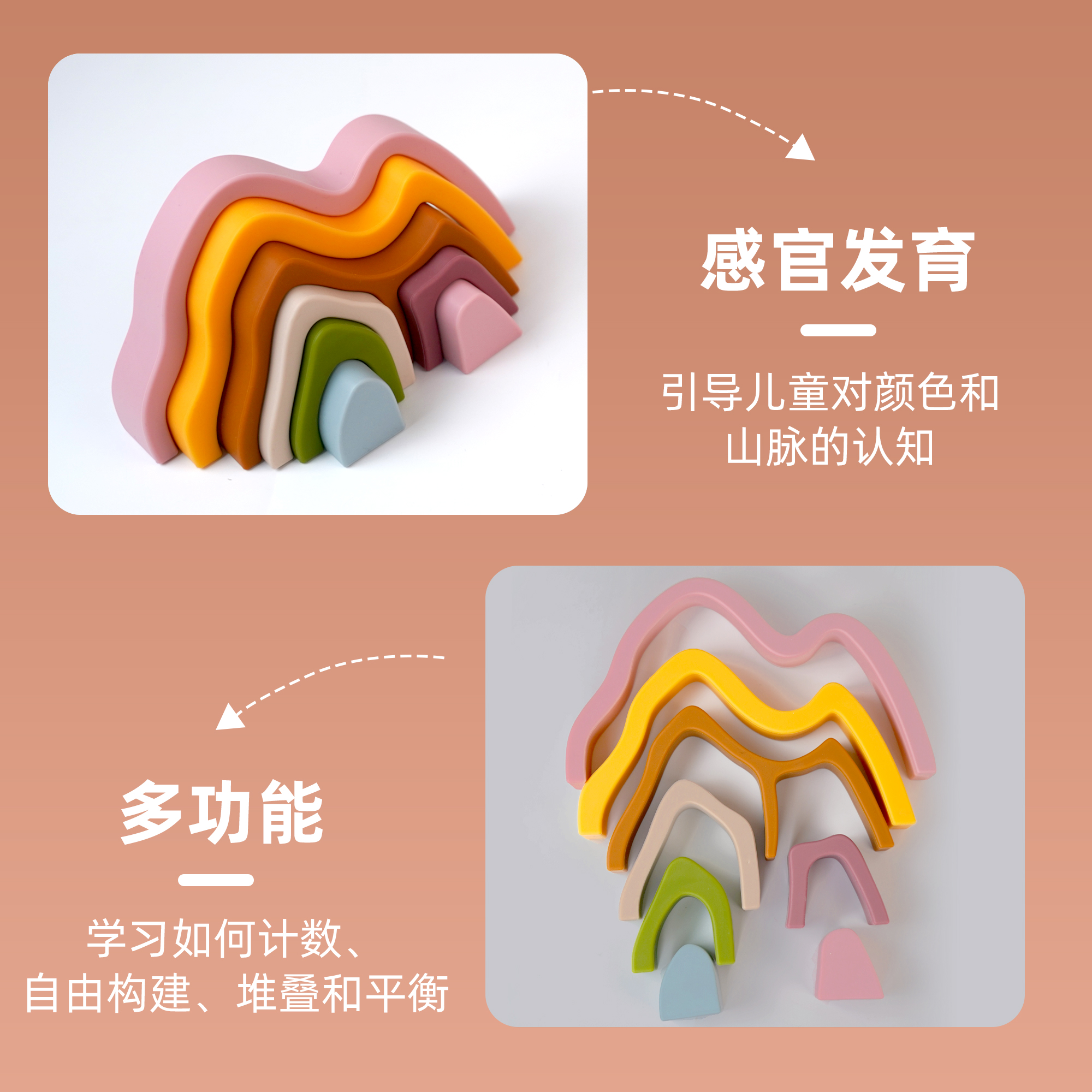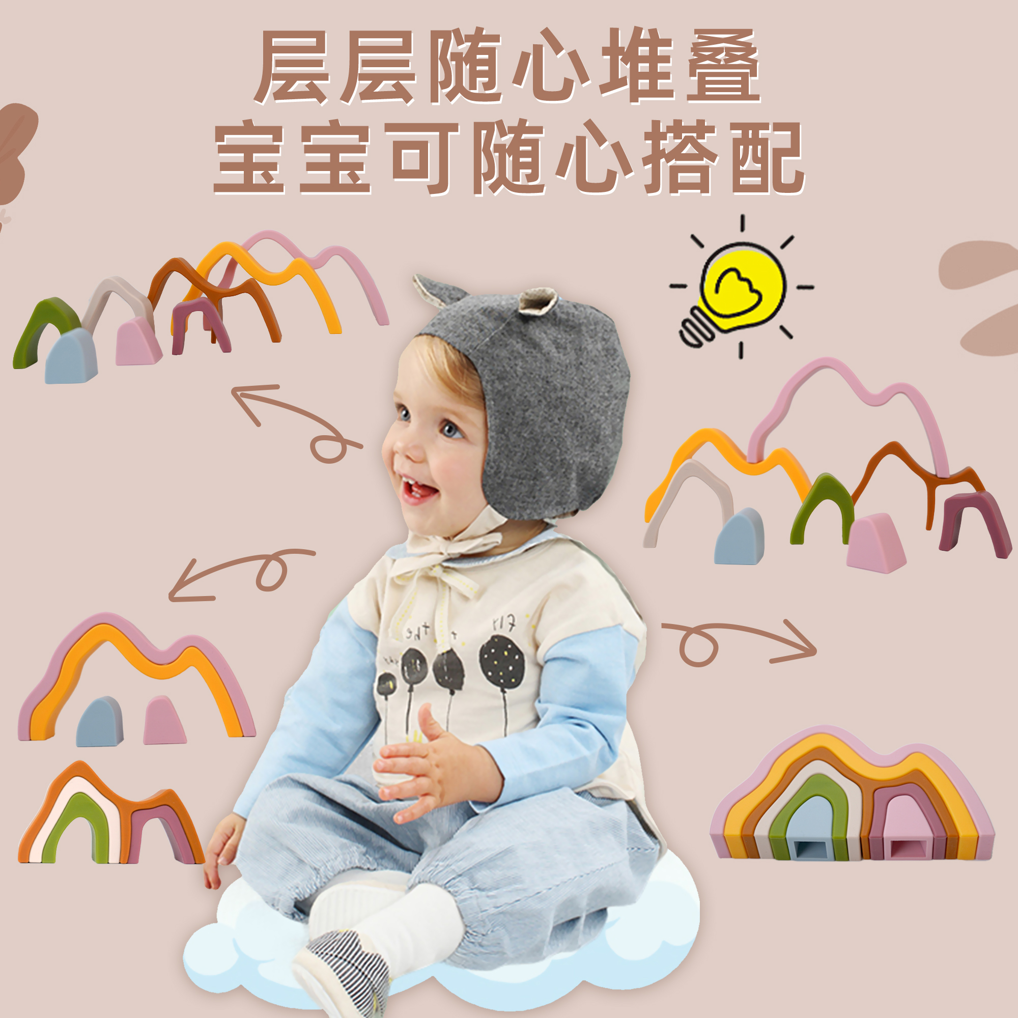 硅膠疊疊樂積木山玩具可啃早教大腦開發(fā)益智玩具
