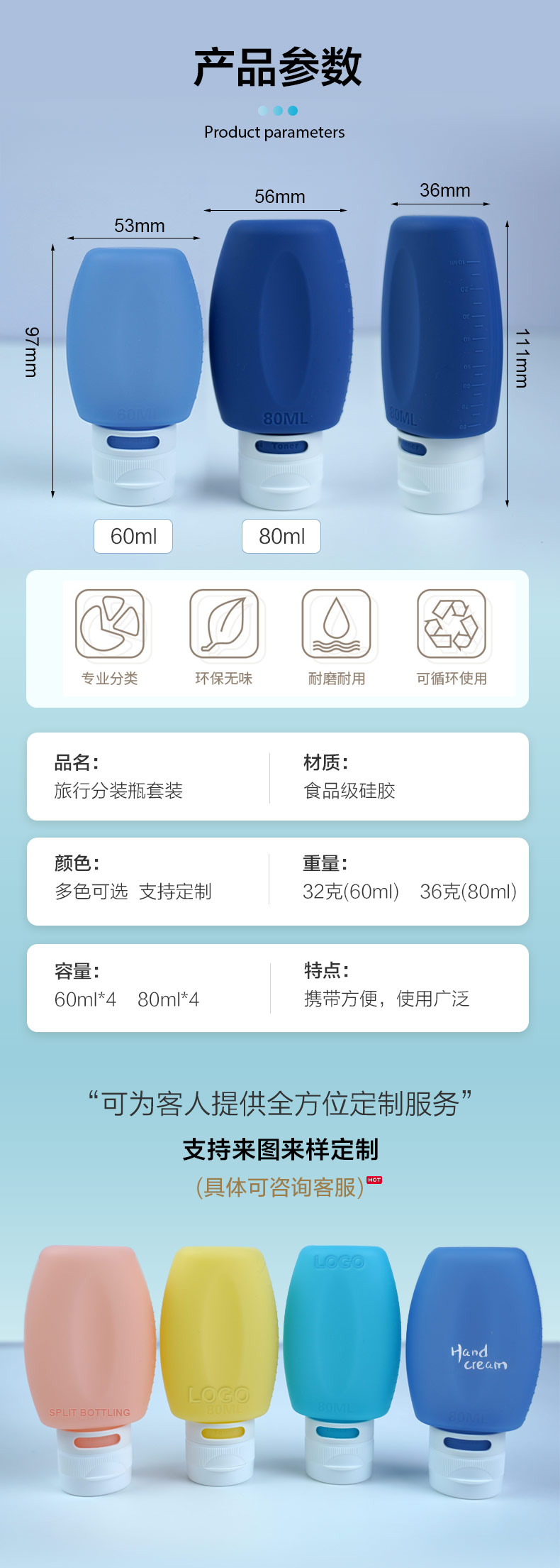 旅行分裝瓶洗發(fā)水化妝品硅膠乳液分裝瓶套裝化妝品收納瓶現(xiàn)貨批發(fā)