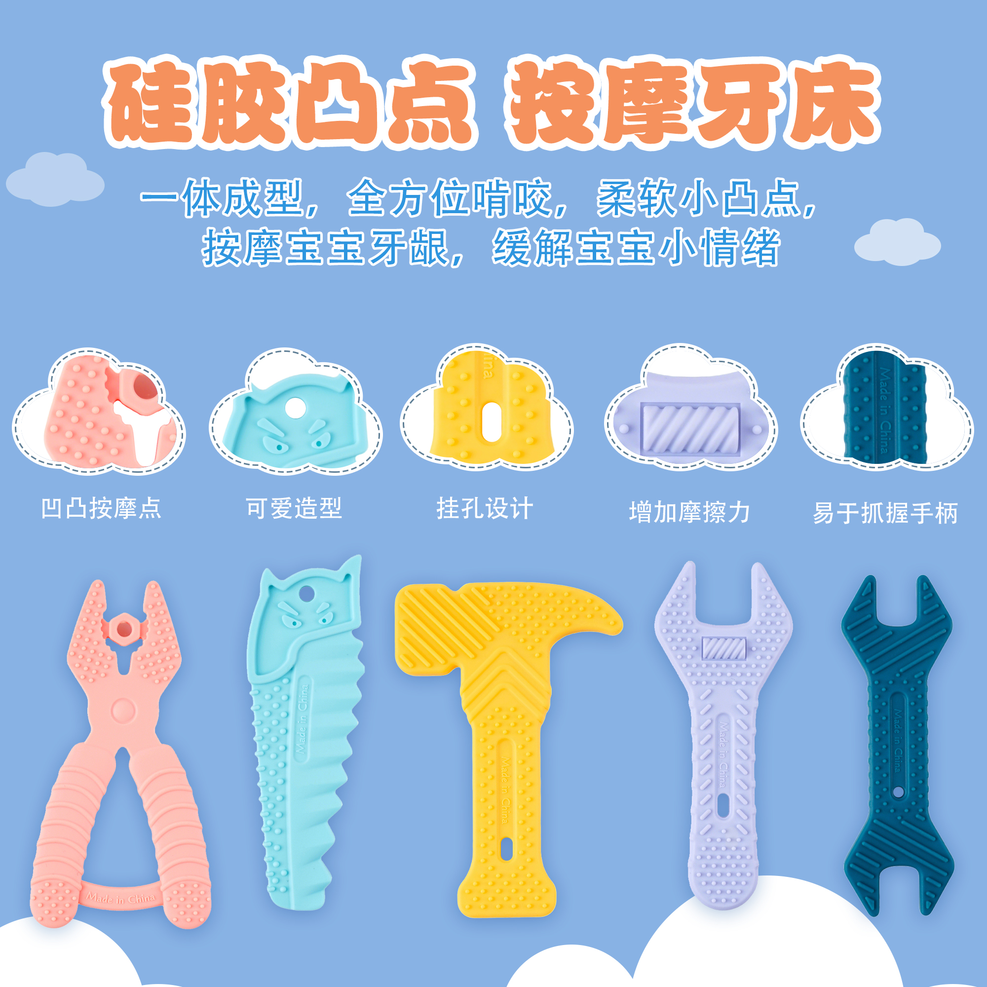 您的位置:首頁 > 產(chǎn)品中心 > 硅膠嬰童用品 > 牙膠 > 亞馬遜錘子扳手牙膠嬰兒硅膠磨牙棒寶寶卡通兒童防咬手牙膠5件套