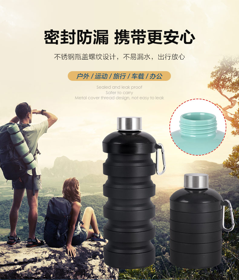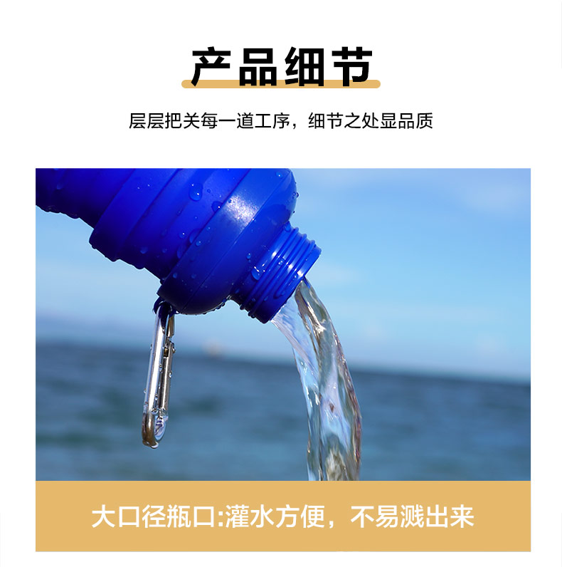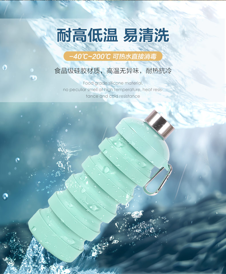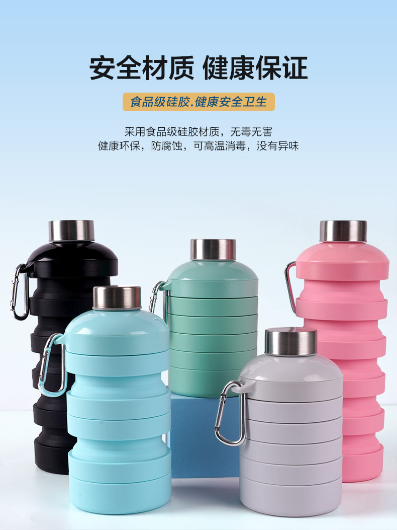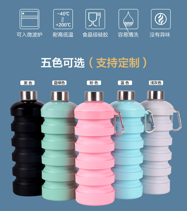 用途:食品級材質,不含BPA,可伸縮折疊,不占空間,抗摔耐壓,耐熱抗冷,多色可選,時尚健康