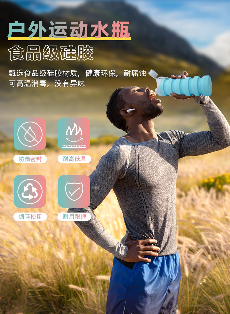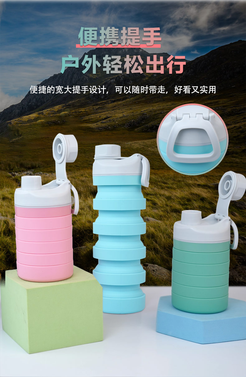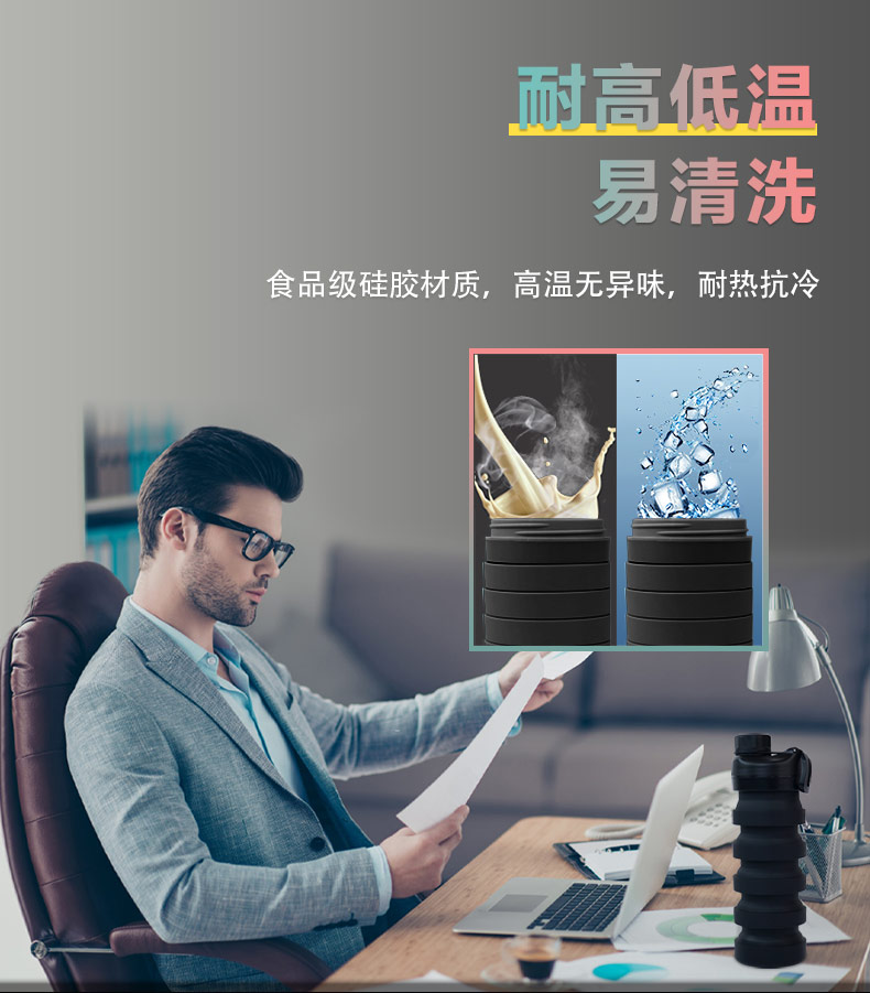用途:食品級材質(zhì),不含BPA,可伸縮折疊,不占空間,抗摔 耐壓,耐熱抗冷,多色可選,時(shí)尚健康